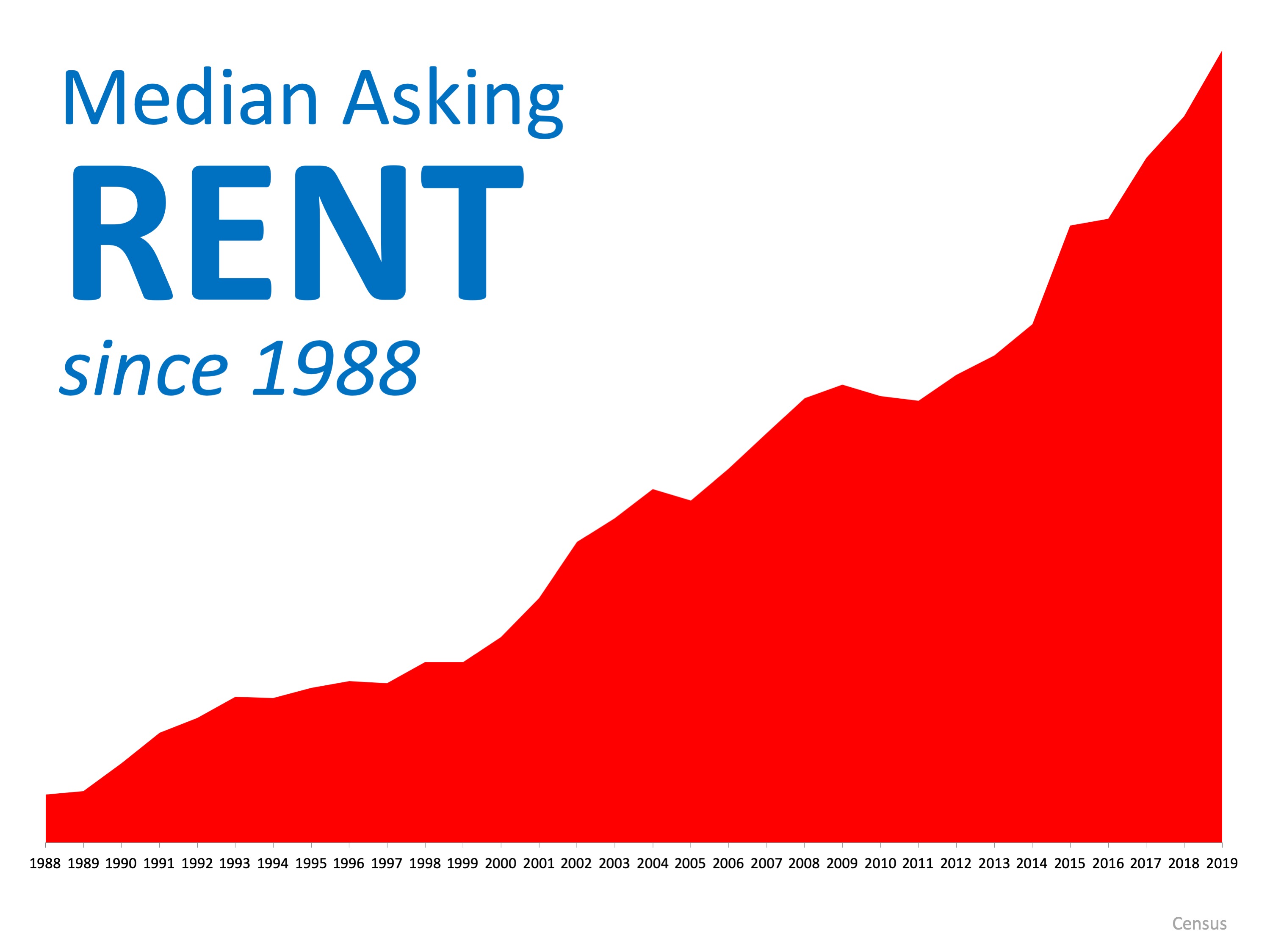 It’s no wonder rising rental costs came in as the top answer. The median asking rent price has risen steadily over the last 30 years, as you can see below.