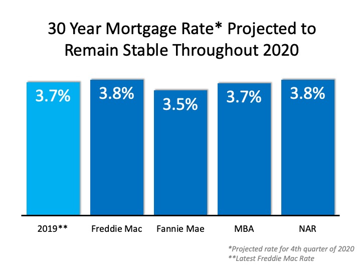 Projections from the experts at the National Association of Realtors (NAR), the Mortgage Bankers Association (MBA), Fannie Mae, and Freddie Mac all forecast mortgage rates remaining stable throughout 2020:The 2020 Real Estate Projections That May Surprise You | Simplifying The MarketSince rates have remained under 5% for the last decade, we may not fully realize the opportunity we have right now.