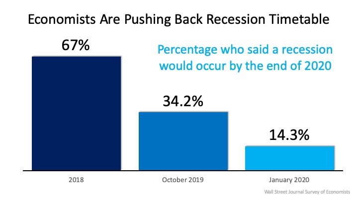 We’re currently in the longest economic recovery in U.S. history. That has caused some to ask experts to project when the next economic slowdown (recession) could occur. Two years ago, 67% of the economists surveyed by the Wall Street Journal (WSJ) for the Economic Forecasting Survey predicted we would have a recession no later than the end of this year (2020). The same study done just three months ago showed more than one third of the economists still saw an economic slowdown right around the corner.