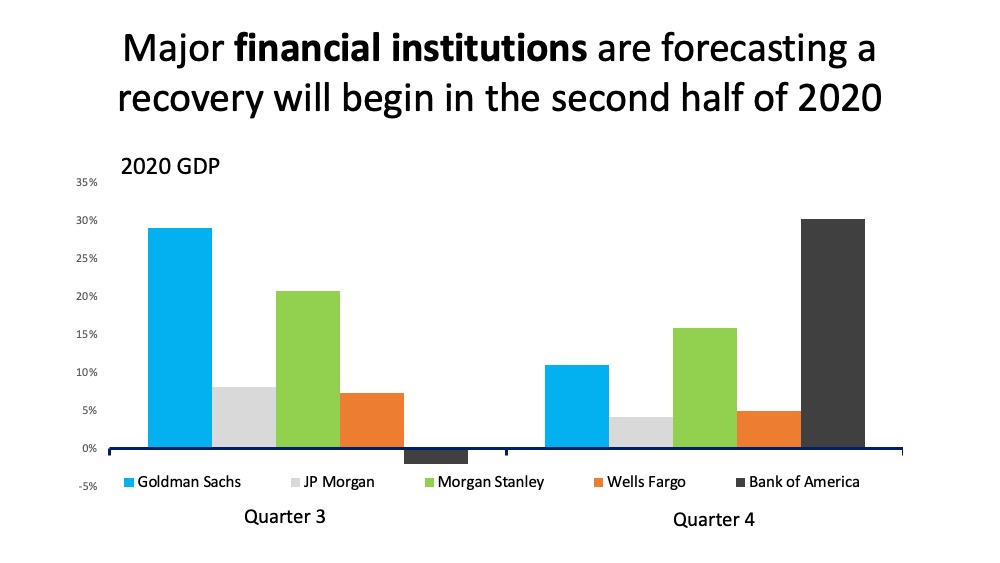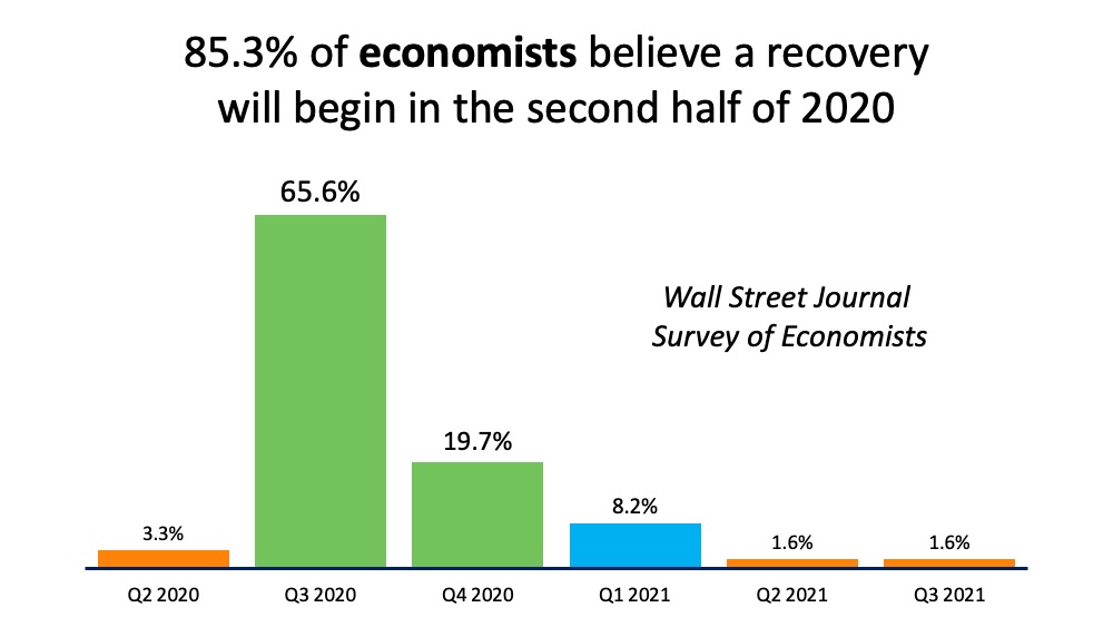 The vast majority of economists, analysts, and financial institutions are in unison, indicating an economic recovery should begin in the second half of 2020. Agreement among these leading experts is stronger than ever.