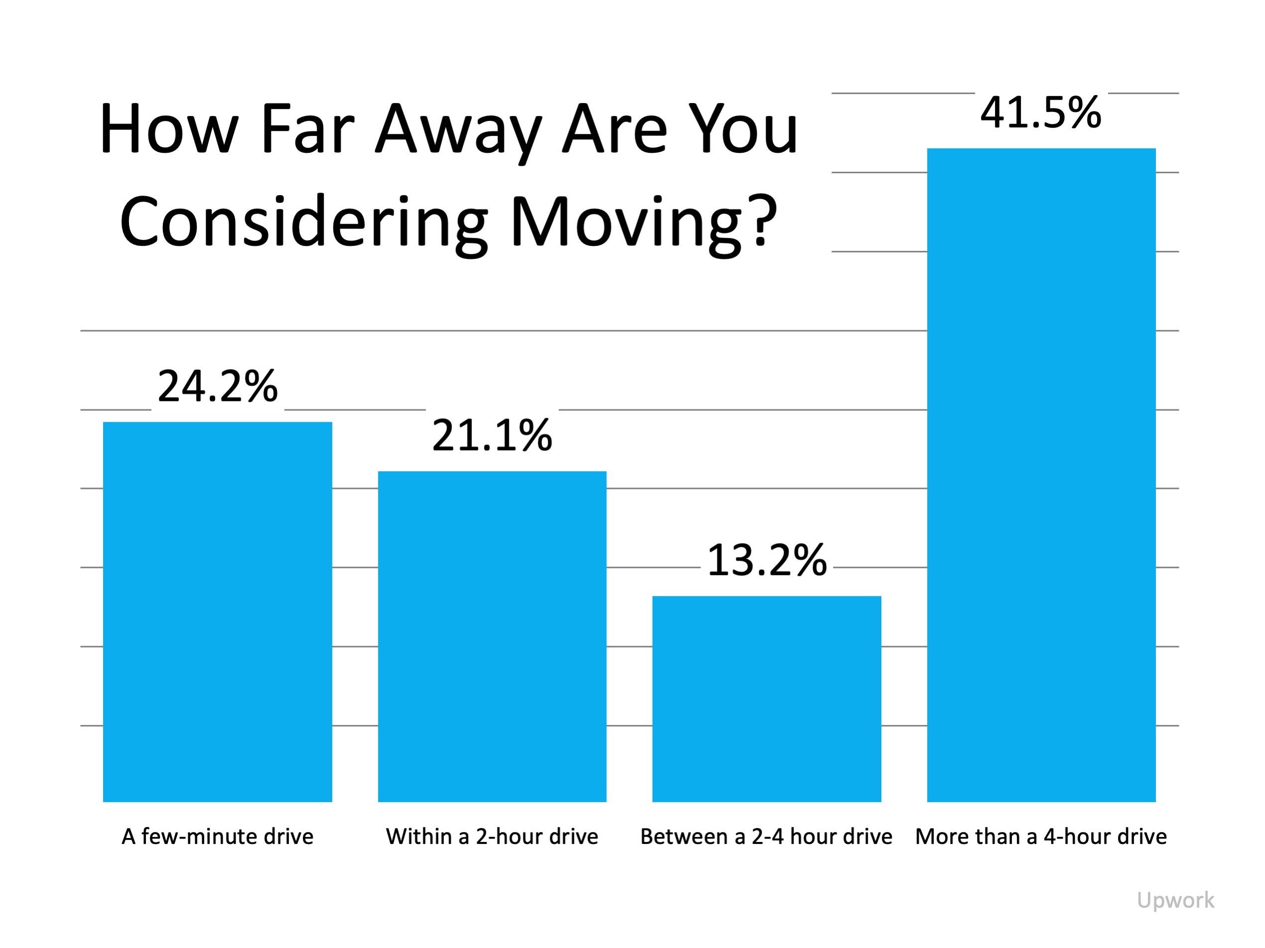 The same study also notes while 45.3% of people are planning to stay within a 2-hour drive from their current location, 41.5% of the people who are citing working from home as their primary reason for making a move are willing to look for a home more than 4 hours away from where they live now (See graph below):