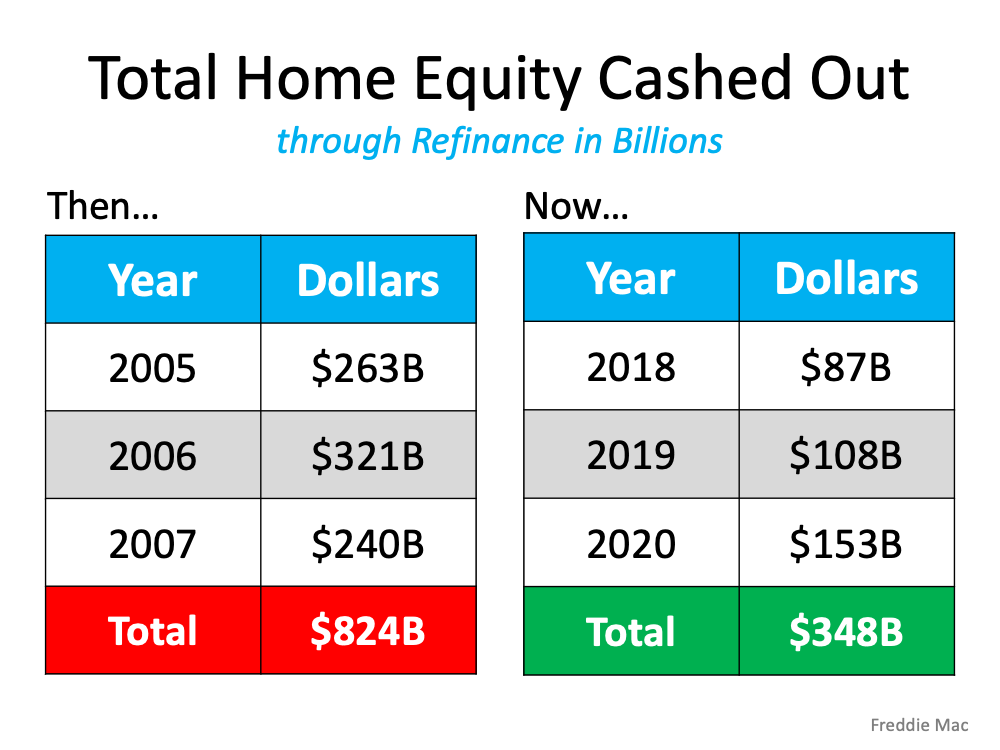 In the run-up to the housing bubble, homeowners were using their homes as personal ATM machines. Many immediately withdrew their equity once it built up, and they learned their lesson in the process. Prices have risen nicely over the last few years, leading to over 50% of homes in the country having greater than 50% equity – and owners have not been tapping into it like the last time. Here’s a table comparing the equity withdrawal over the last three years compared to 2005, 2006, and 2007. Homeowners have cashed out almost $500 billion dollars less than before:6 Simple Graphs Proving This Is Nothing Like Last Time | Simplifying The MarketDuring the crash, home values began to fall, and sellers found themselves in a negative equity situation (where the amount of the mortgage they owed was greater than the value of their home). Some decided to walk away from their homes, and that led to a wave of distressed property listings (foreclosures and short sales), which sold at huge discounts, thus lowering the value of other homes in the area. With the average home equity now standing at over $190,000, this won’t happen today.