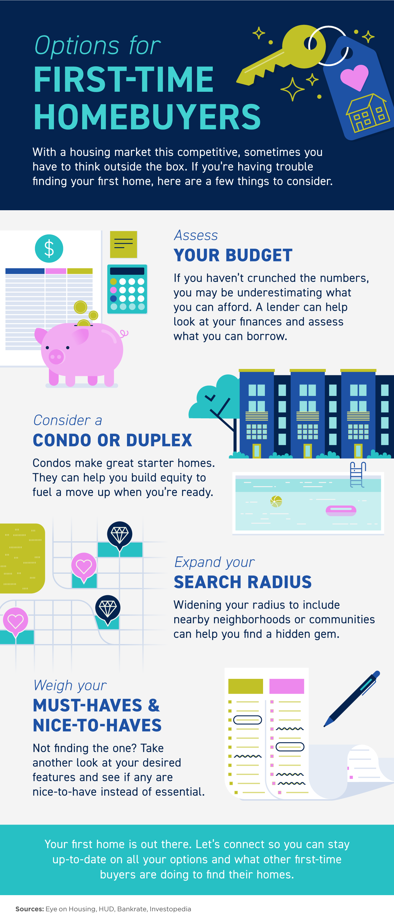 - If you’re having trouble finding your first home, let’s connect to explore your options. It’s out there!