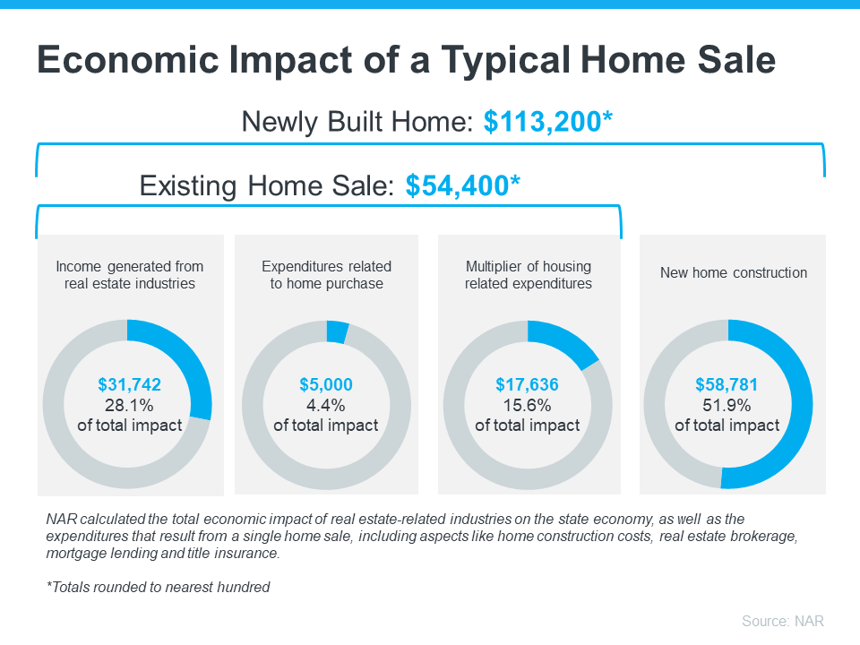 To measure that impact, the National Association of Realtors (NAR) releases a report each year to highlight just how much economic activity a home sale generates. The chart below shows how the sale of both a newly built home and an existing home impact the economy: