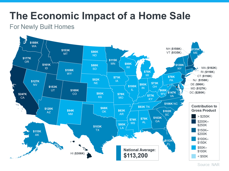 How Buying or Selling a Home Benefits the Economy and Your Community | Simplifying The MarketAs the visual shows, a single home sale can have a significant effect on the overall economy. To dive a level deeper, NAR also provides a detailed look at how that varies state-by-state for newly built homes (see map below):