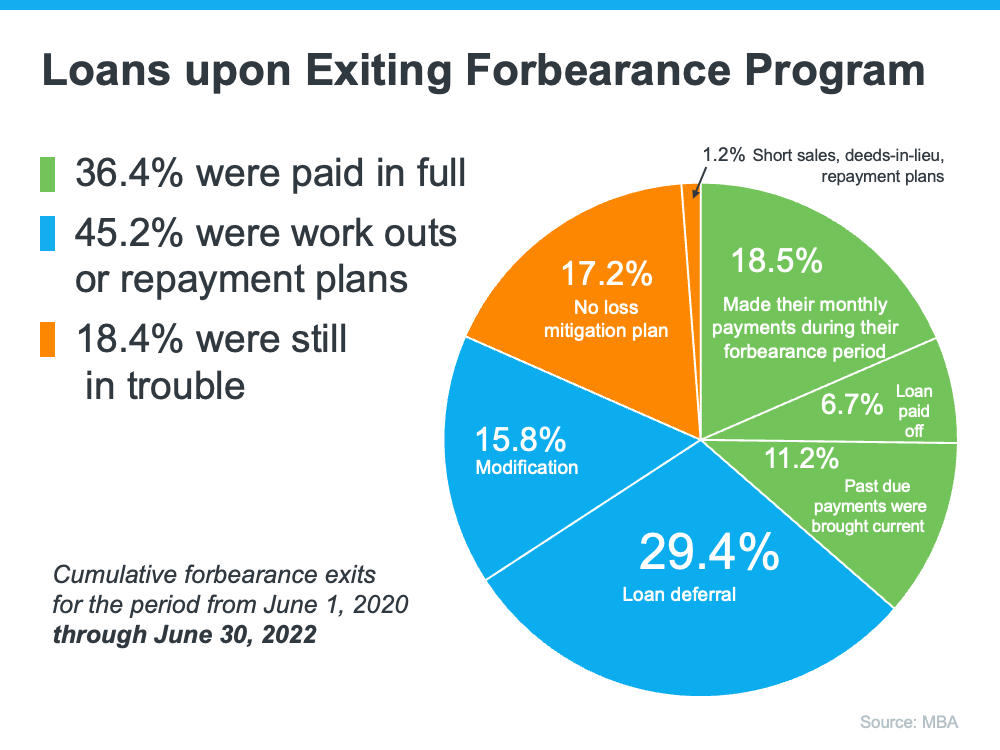As the graph below shows, with modification, deferral, and workout options in place, four out of every five homeowners in forbearance are either paid in full or are exiting with a plan. They’re able to stay in their homes.